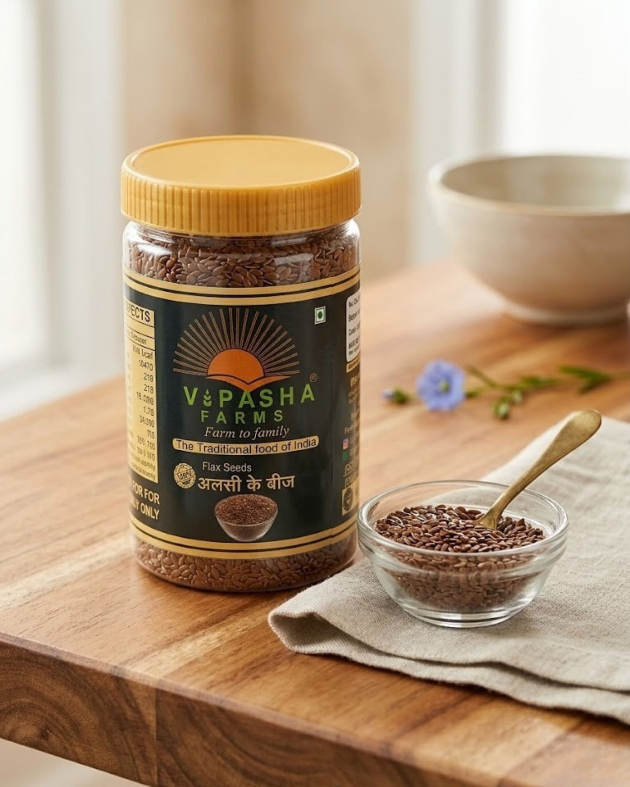 - 100% pure and natural flax seeds, sourced from sustainable farms.